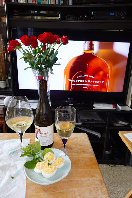After a while, getting close to the playing of Old Kentucky Home, I thought it was an appropriate moment to crack open a special Kentucky Derby bottle of Kendall-Jackson Chardonnay.