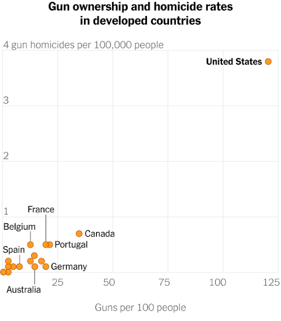 The data exposes a clear trend: Where there are more guns, there are more gun deaths. Studies have found this to be true at the state and national level, and for homicides, suicides, mass shootings and police shootings. Stricter regulations on firearms are linked to fewer gun deaths. |