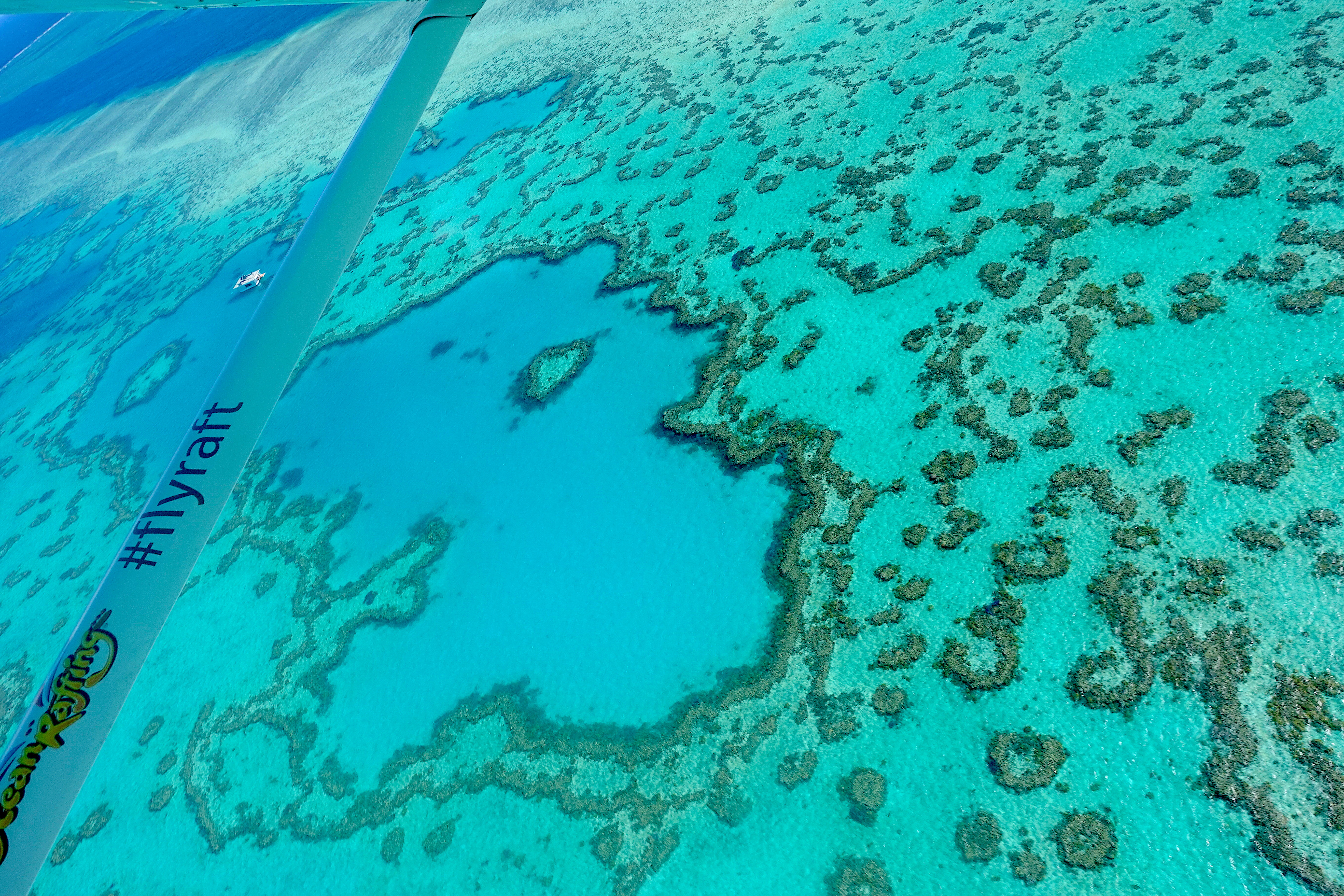 So many ways to experience the Great Barrier Reef. Scuba dive, glass-bottom boat, sky dive...or just remain on the plane, as we did.
