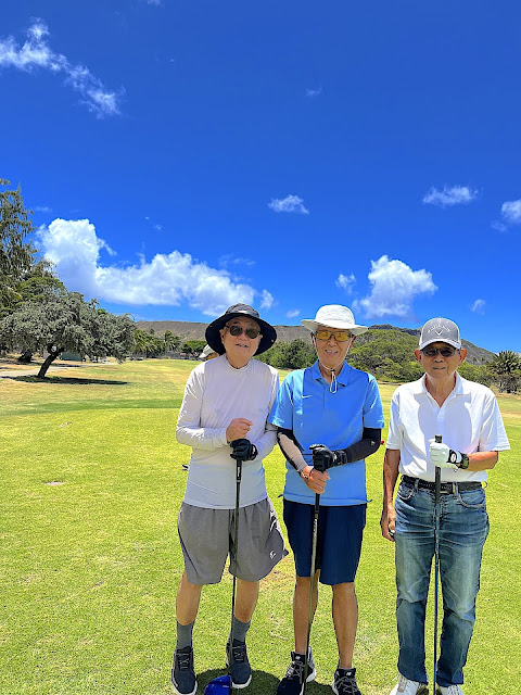 So with that background, here is what I've been doing these past few weeks. Living here does not means being stuck in a building. I still drive, and go golfing almost weekly. There are four of us at the Ala Wai Golf Course for a Buddhist tournament.