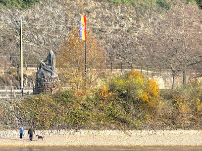 Departing Koblenz, we then were treated to the famous Middle Rhine Transit, a four-hour cruise through what you see in ads for European river cruises. Go to my posting for all the photos. Here are a few, beginning with the statue of Lorilei, sitting there, singing sweetly to sailors to lure them to some coming doom.