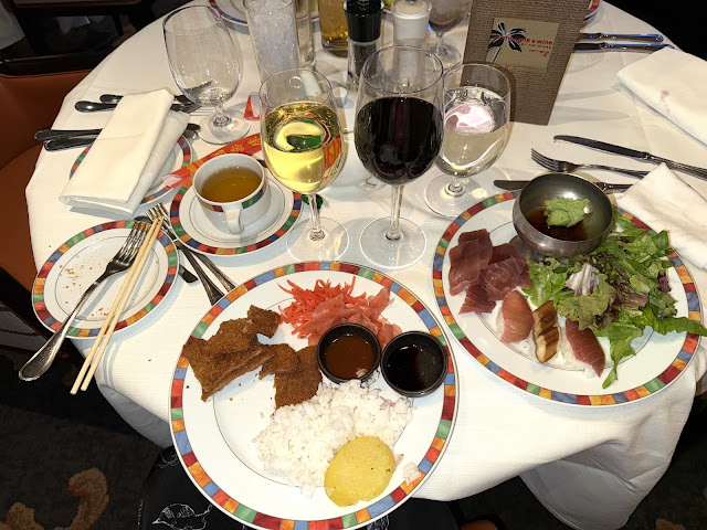 Tomorrow we continue at sea. The cruise has so far been reasonably smooth. The cuisine, the best of any other cruise we've experienced. Tonight, our first at Toscana, the Italian restaurant, said to be the most popular of all.-